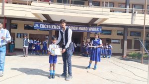 A student of our school who won the inter-school drawing competition for drawing a picture on the special occasion of Diwali was felicitated with a certificate and a prize.